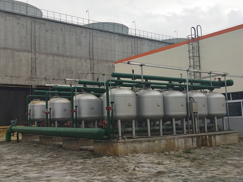 本項目為循環(huán)水站的全自動過濾器處理設備,總計4套。其中單套設計處理能力1000m3/h,計20臺過濾罐,3套;單套設計處理能力500m3/h,計10臺過濾罐,計1套。本項目過濾水源為循環(huán)回水,進水濁度:≤20NTU;過濾出水水質(zhì):濁度<3NTU,反洗方式為內(nèi)原反洗。